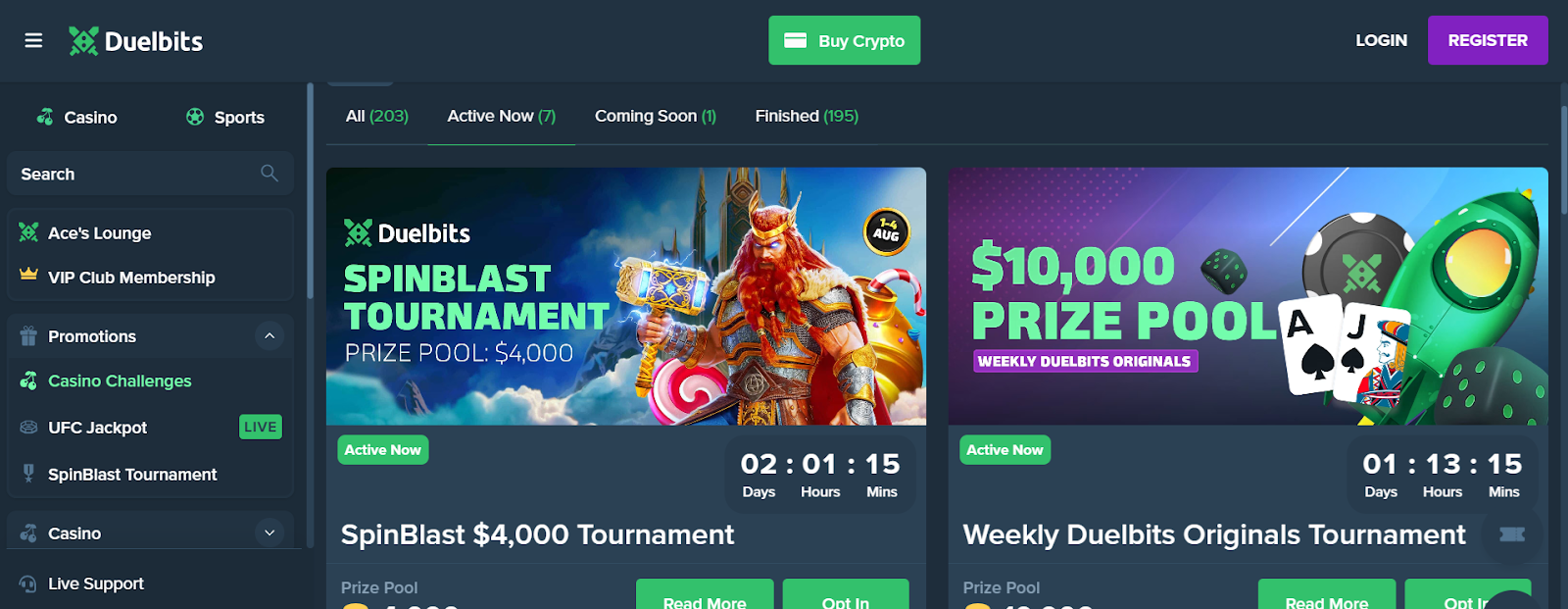 Choosing to stand out from its rivals, Duelbits focuses on long-term value over flashy sign-up offers, being built with a strong loyalty ecosystem centered on rakeback and VIP rewards. As a new user, you can claim up to 500 free spins and enjoy a 50% rakeback system that pays out daily, with even bigger bonuses for active VIPs. Duelbits’ “Ace’s VIP Lounge” adds daily, weekly, and monthly incentives beyond rakeback, and gives you access to exclusive leaderboard tournaments and seasonal events, and an up to 12.5% house edge bonus for the most dedicated players!
