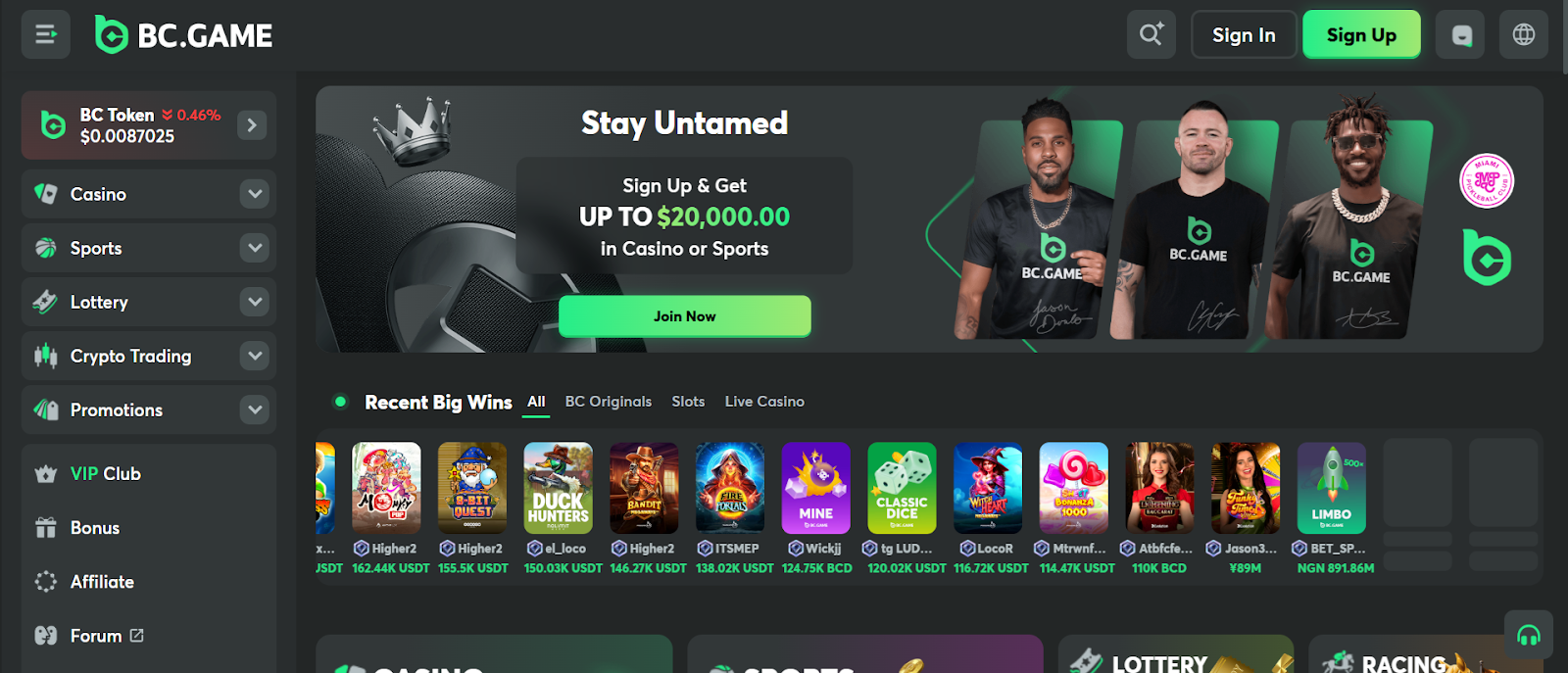 BC.Game is one of the most recognized names in the crypto gambling industry, offering a smooth-running, clean interface and an incredible game library of around 9,000 titles. This includes slots, table games, poker, bingo, lottery, and live dealer tables, as well as BC Originals like Crash, Dice, and Plinko, all of which are built on provably fair technology.