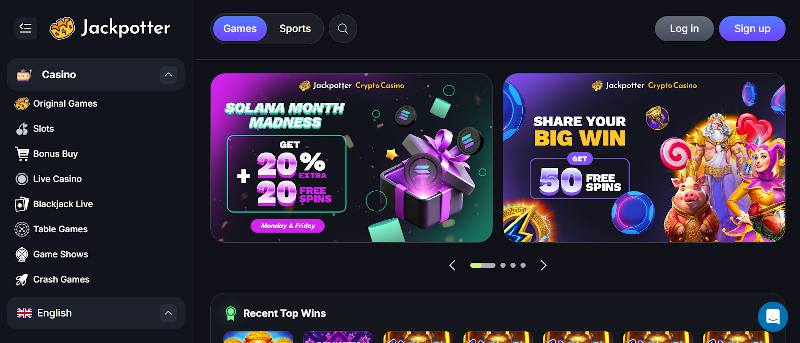 What really sets Jackpotter apart for us is its layered bonus system. Players earn daily, weekly, and monthly crypto bonuses automatically, based on their activity, win or lose, with no opt-ins or hidden rules. Bonuses go up as your loyalty status does, through 21 ranks from Newbie to Jackpotter. Every login, bet placed, and level-up feeds into your XP progression, unlocking bigger rewards and better perks along the way. That means that even casual players can earn rewards just by staying active, no high-stakes grinding required!
