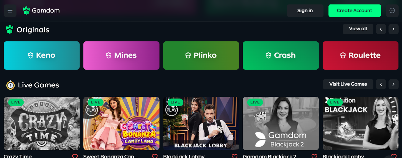 One of the “granddads” on this list, Gamdom, founded in 2016 and licensed through Smein Hosting N.V. under Curaçao eGaming, stands out to us for being a provably fair platform that offers generous rakeback and boasts a massive catalog – around 7,000 games: everything from popular slots and table games to original titles like Crash, Dice, Hi-Lo, Mines, and Plinko. Note that Gamdom doesn’t offer live streaming.