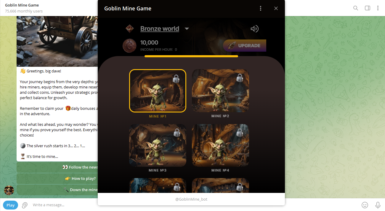 Let’s break it down for anyone new to the game. Here’s how you can start playing Goblin Mine on Telegram: