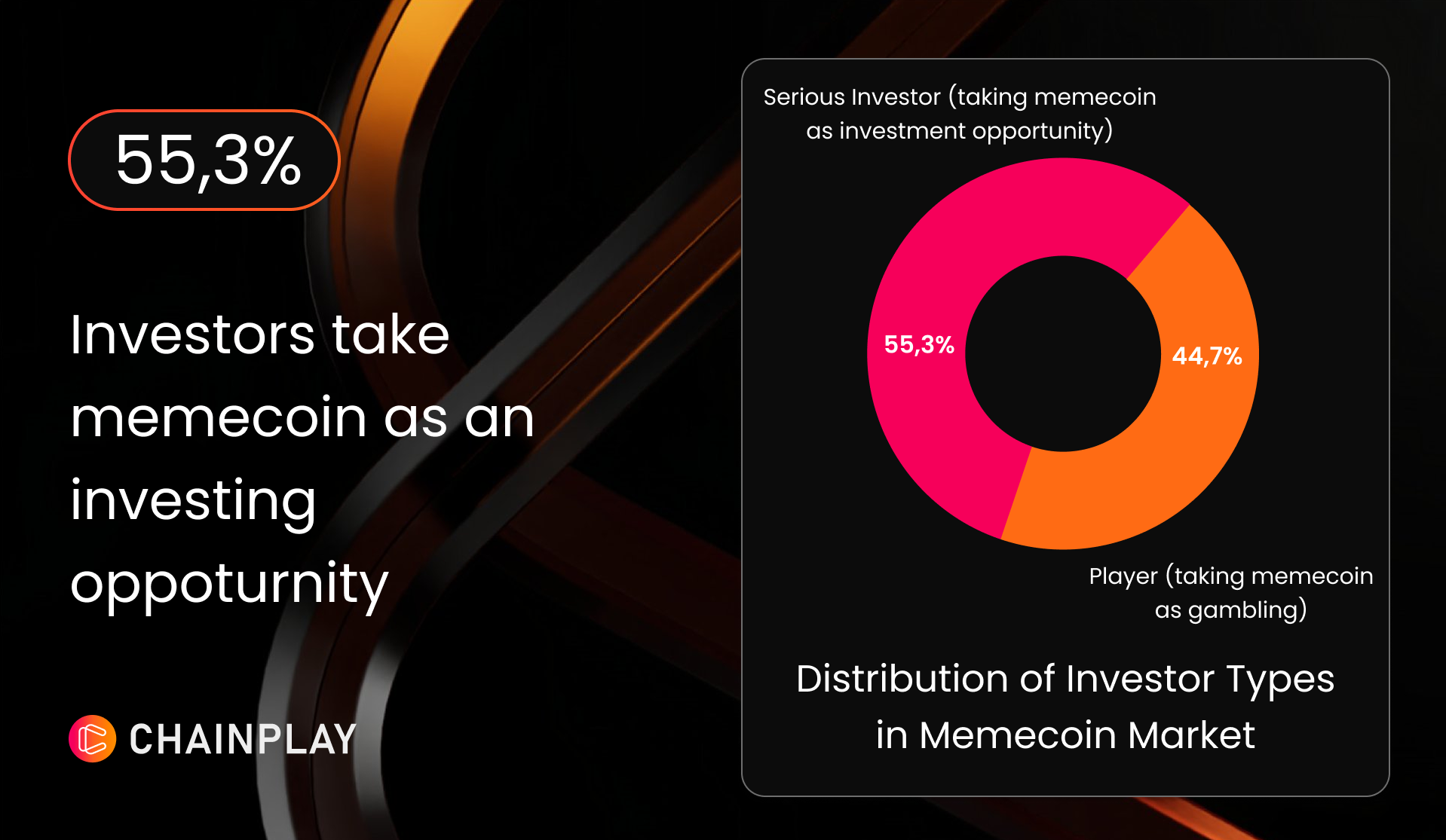 A significant 55,3% of memecoin investors now approach these tokens as genuine investment opportunities, rather than just speculative gambling. This shows that most participants are treating meme coins with strategic financial intent, reflecting the sector’s growing maturity and appeal for serious investment.