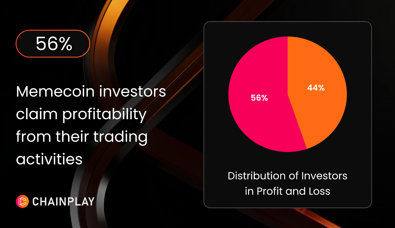 - In general, 56% investors trading memecoin claim they are profitable, which is against the propaganda that only 1% are profitable trading memecoin
