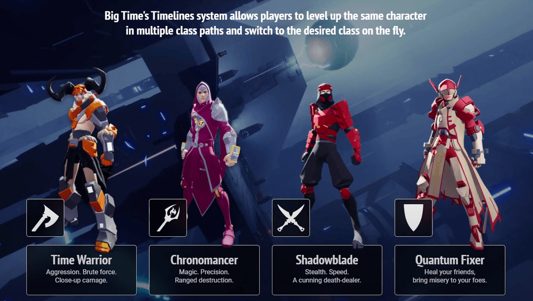 Big Time is a captivating and dynamic gaming experience that offers players a wide array of classes, each with its own unique skills and playstyle. The innovative use of the Pocket Watch allows for seamless class-switching, making it easier to explore different roles and adapt to various in-game situations. This flexibility ensures that players can enjoy diverse styles of gameplay without the need to create multiple characters.