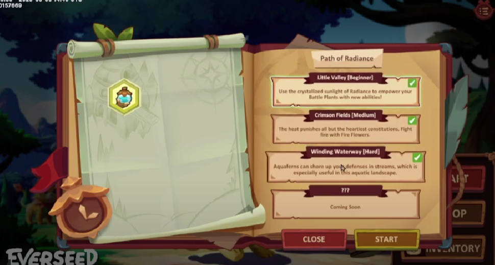 Everseed, at its core, is a tower defense game that challenges a player’s strategy and tactical positioning skills. Once players choose which level of difficulty they want, they will be taken to a field where the game will begin.