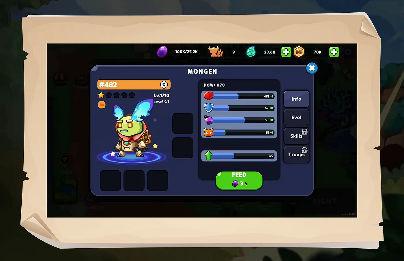 When you first check out the game, it feels a lot like Axie Infinity in how it works and what you do in the game. The main difference is that you can level up and evolve your Mongens, which adds a unique twist to the gameplay.