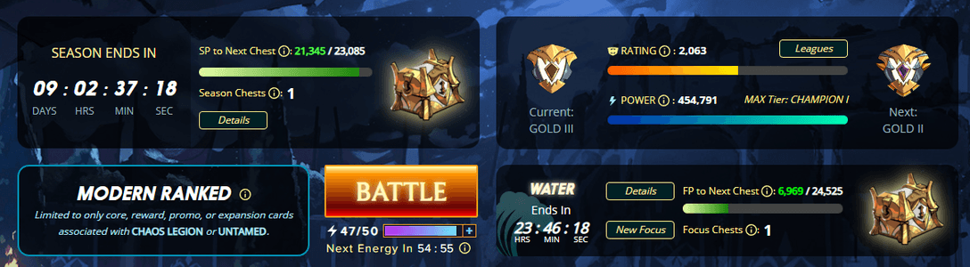 On a daily basis, players can complete quests and claim their rewards. These quests refresh every 24 hours and vary each time. The rewards are distributed based on the number of Focus Points earned, with reward packs containing cards, SPS tokens, or occasionally even card packs.