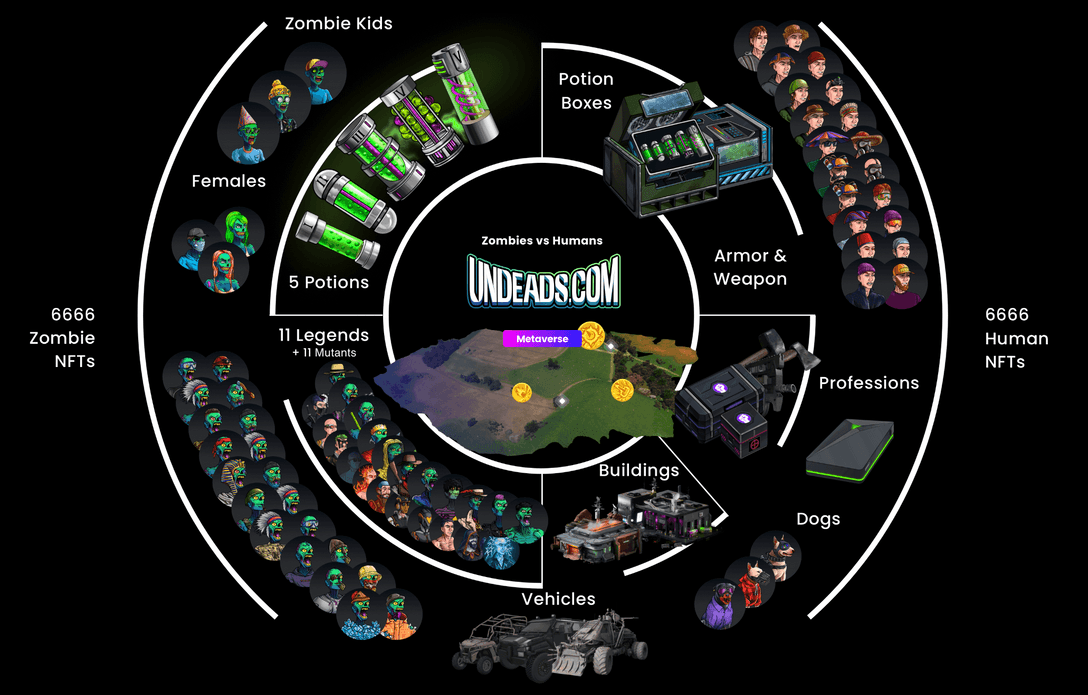Other collections coming soon to the Undeads universe will expand its NFT offerings to a total of 10 collections, enhancing both gameplay and investment opportunities. These upcoming collections include: