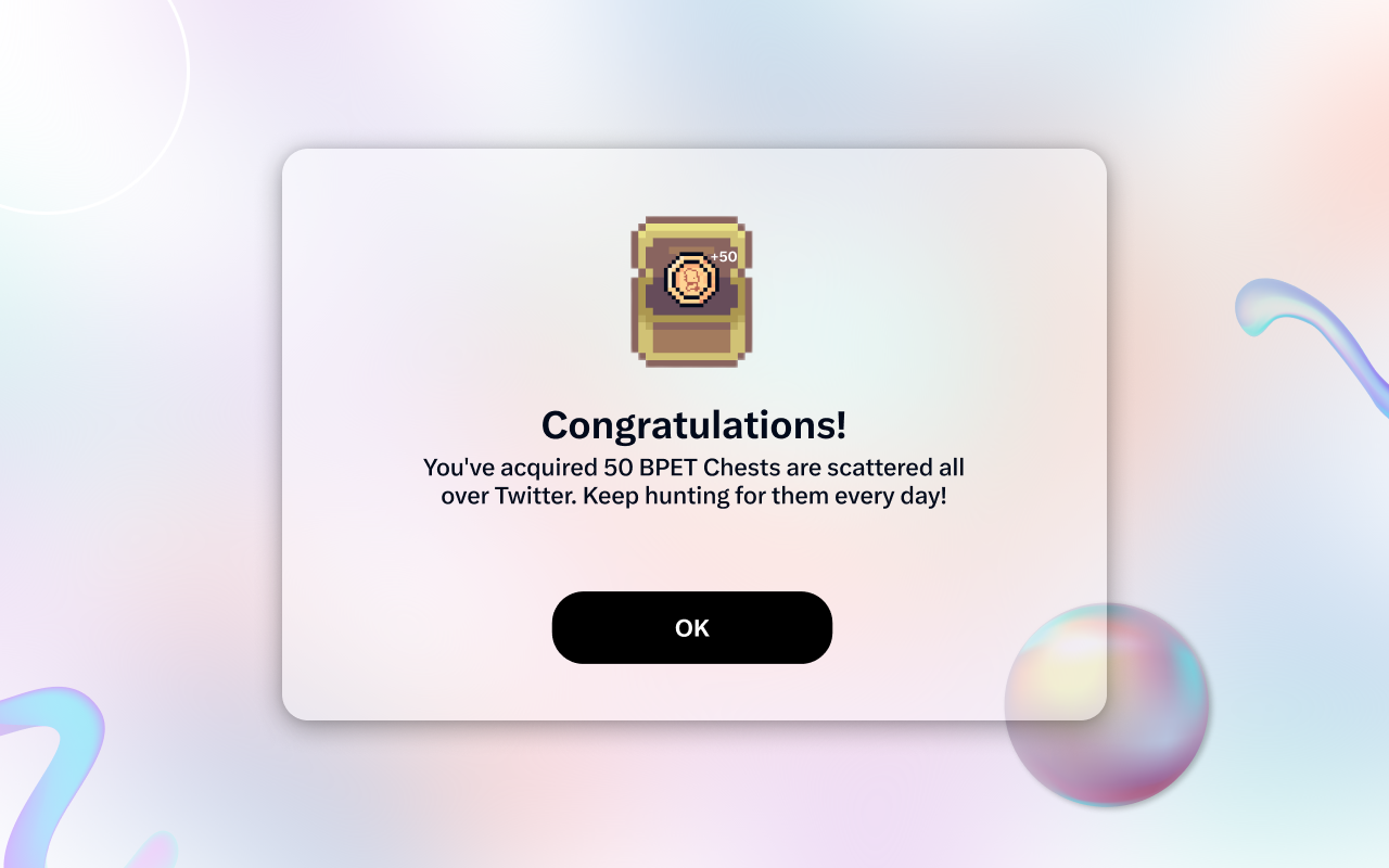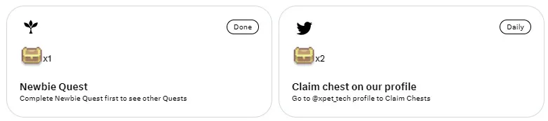 6. Participate in the second quest: “Daily, collect 2 Chests on your Twitter profile. Unveiling a chest may result in obtaining $XPET or valuable items to nurture your pet.”
