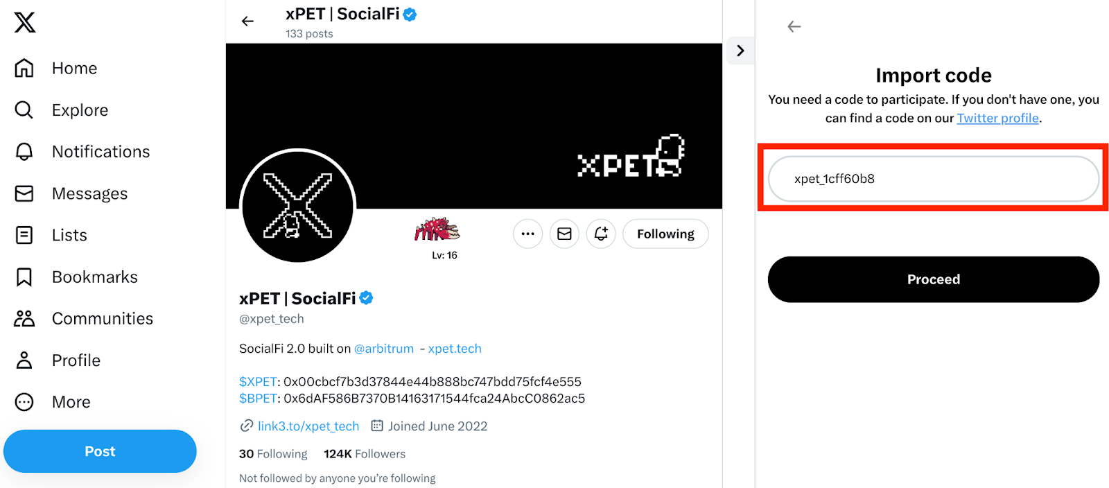 2. Sign up for a new Xpet account utilizing your X account details and input the invite code: xpet_1cff60b8 (Access requires a code).