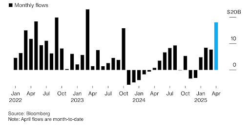 Over the past few months, traders have increasingly turned to safer investments. This is due to concerns about the potential long-term impact of a global trade war and uncertain economic growth prospects. Recent data reveal that there were approximately $18 billion in inflows into safe-haven funds during April alone.