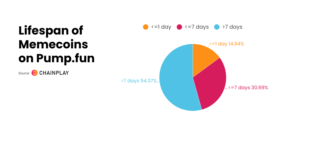 - Average lifespan of memecoins on pump.fun is 12 days.