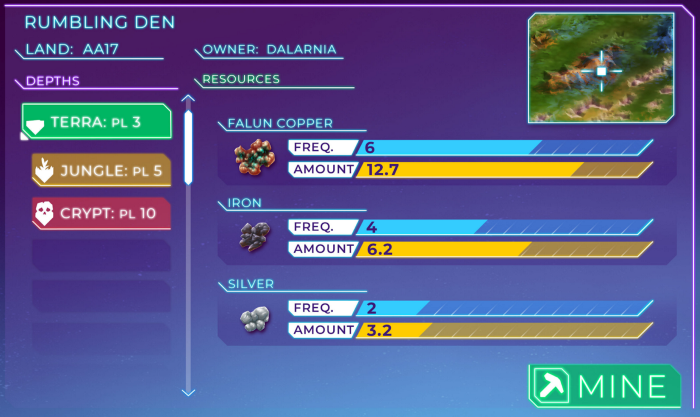 Mines of Dalarnia is a captivating action-adventure game based on the Chromia blockchain. What makes it even better is that it is a free-to-play game with four different worlds. These worlds are named Darkness, Ice, Lava, and Terra.