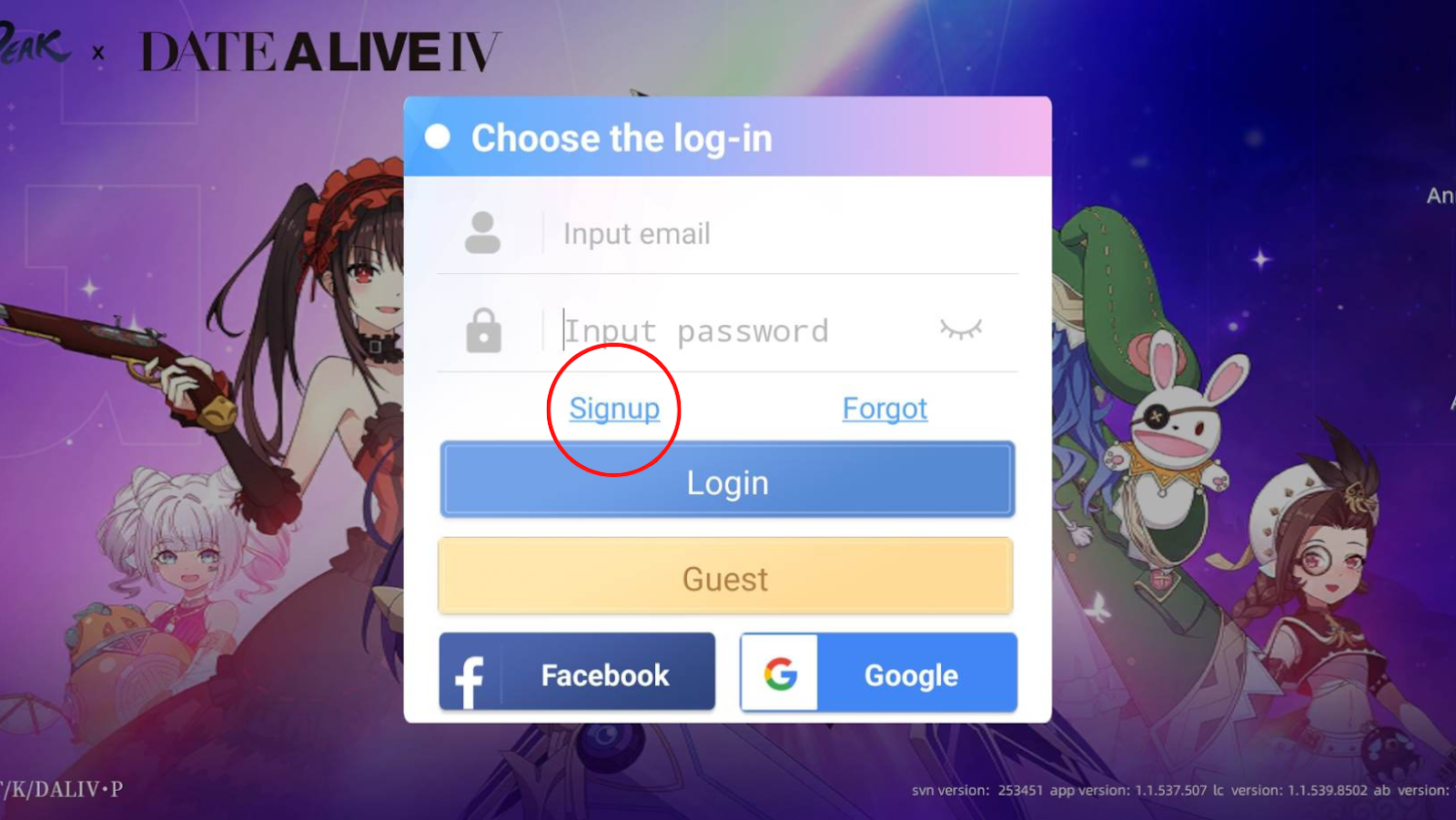 Below the login details, you can create an account by pressing the Signup button. You can also sign up using your Facebook or Google account.