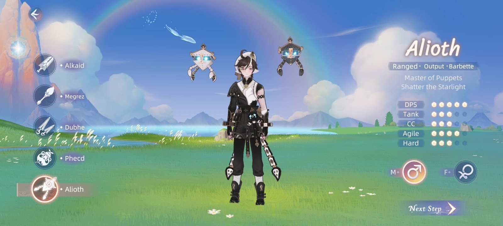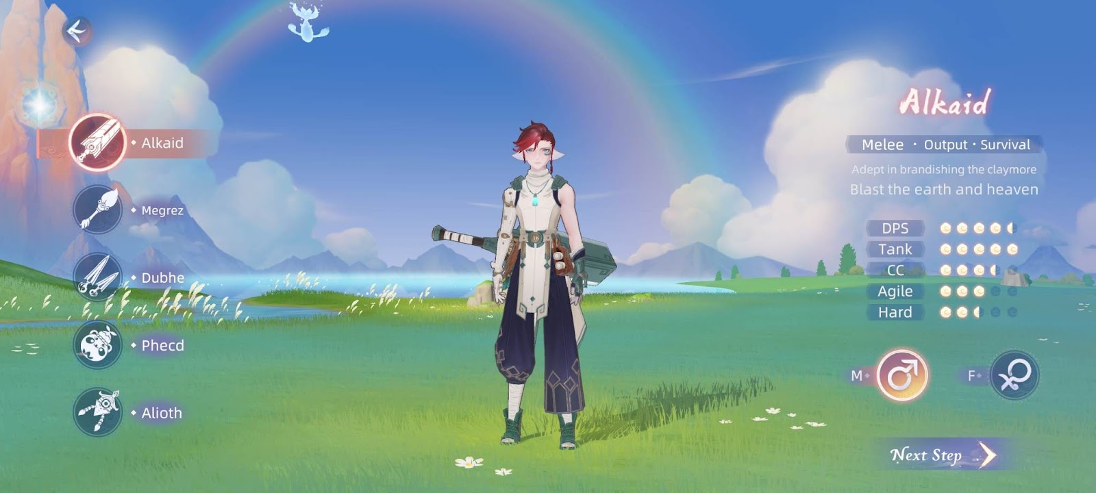 Dubhe is the badass assassin class that excels in short-ranged burst damage to its opponents. Even though it’s fragile and has poor survivability, this edgy class makes up for it with its rogue-like abilities and fast agility.