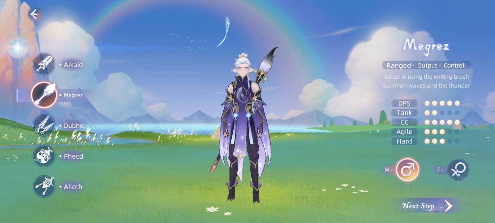 Megrez is your quintessential mage class, but instead of a flashy mage staff, you get a massive magical paintbrush that deals damage via magical ranged attacks. However, this class truly shines for its command of CC(crow control) abilities, capable of eliminating large amounts of enemies at once.