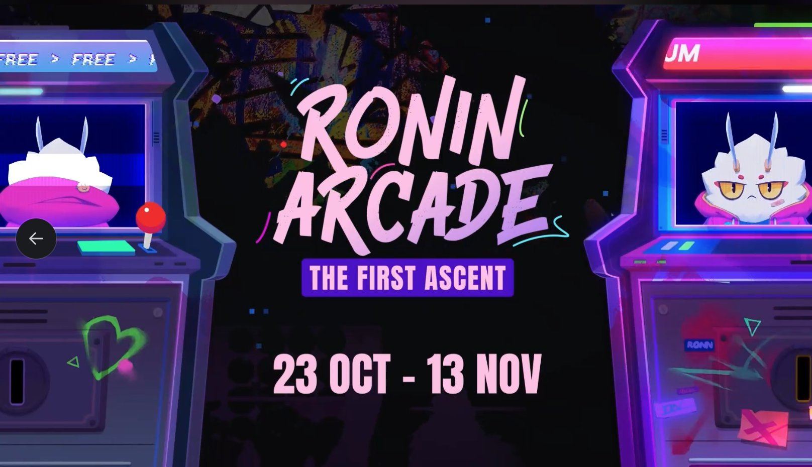 - Sky Mavis will launch Ronin Arcade within hours, running from October 23 to November 13, with 9 games, quests, and a point system that unlocks rewards.