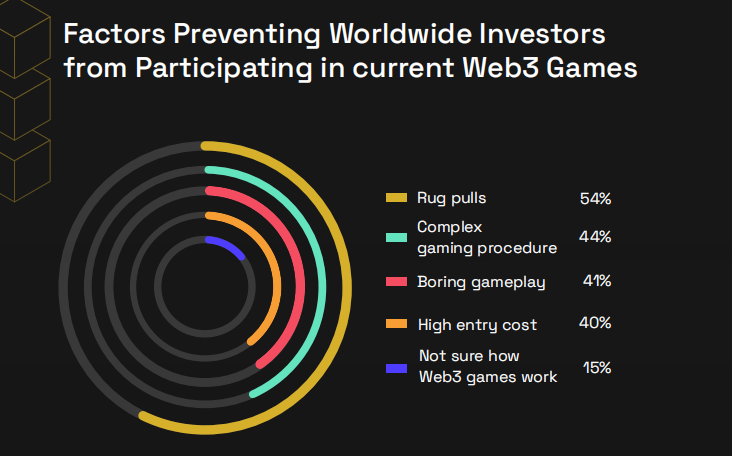 However, the report also noted that fear of rug pulls, or sudden and unethical withdrawal of a project’s funds, remains a major limitation for many investors. The lack of oversight because of decentralization allowed fraudsters to profit from the NFT game project scams.