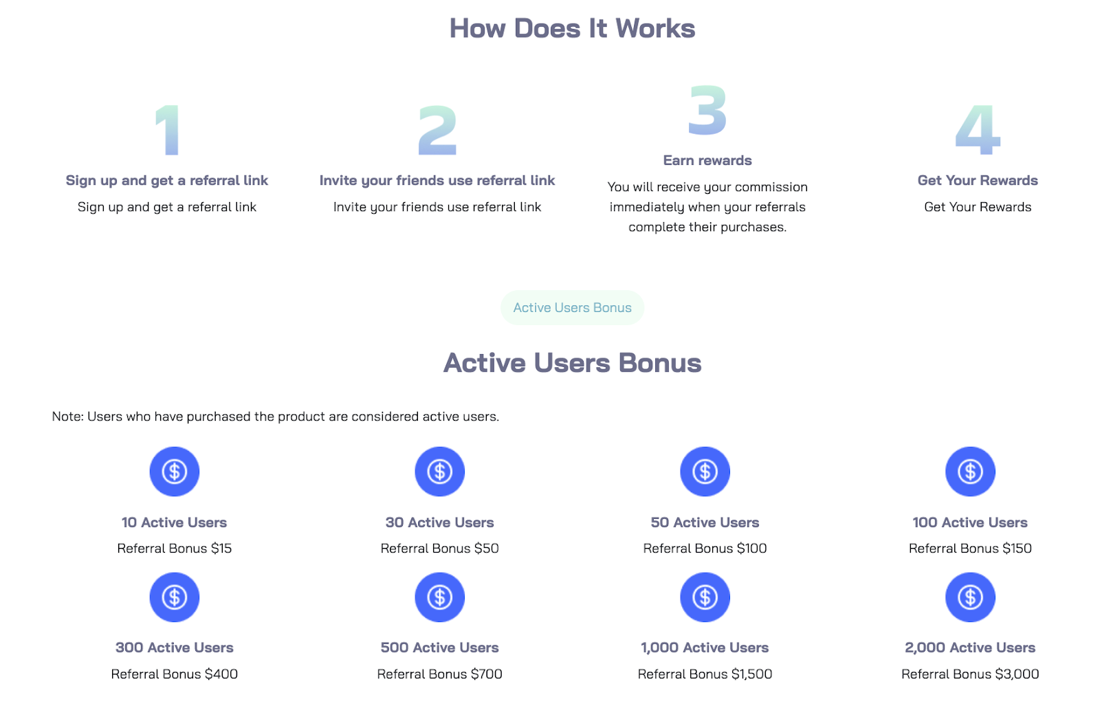 4. Get Your Rewards: See your income increase as you earn commissions from your active users.