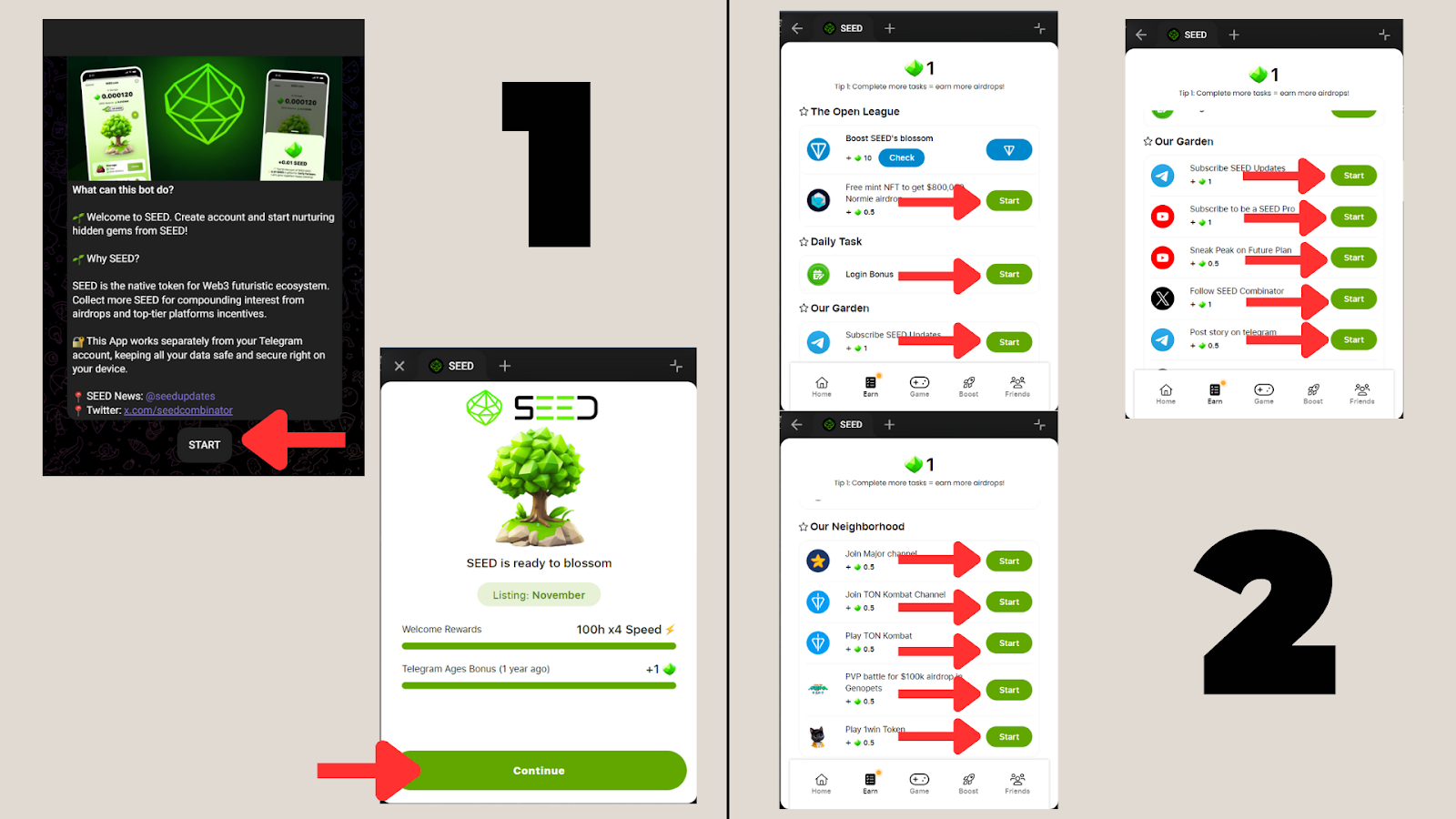 Once you join the Telegram group and activate the Seed bot, you can begin planting virtual seeds, which grow as you complete tasks. The more tasks you complete, the more SEED tokens you earn. These tokens can be withdrawn or traded for another crypto.