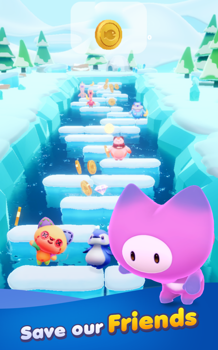 – ADVENTURE GAME: Jumping over the ice or wooden scaffolding to take your friends to a safe place. Above all, the jump’s timing is important.
