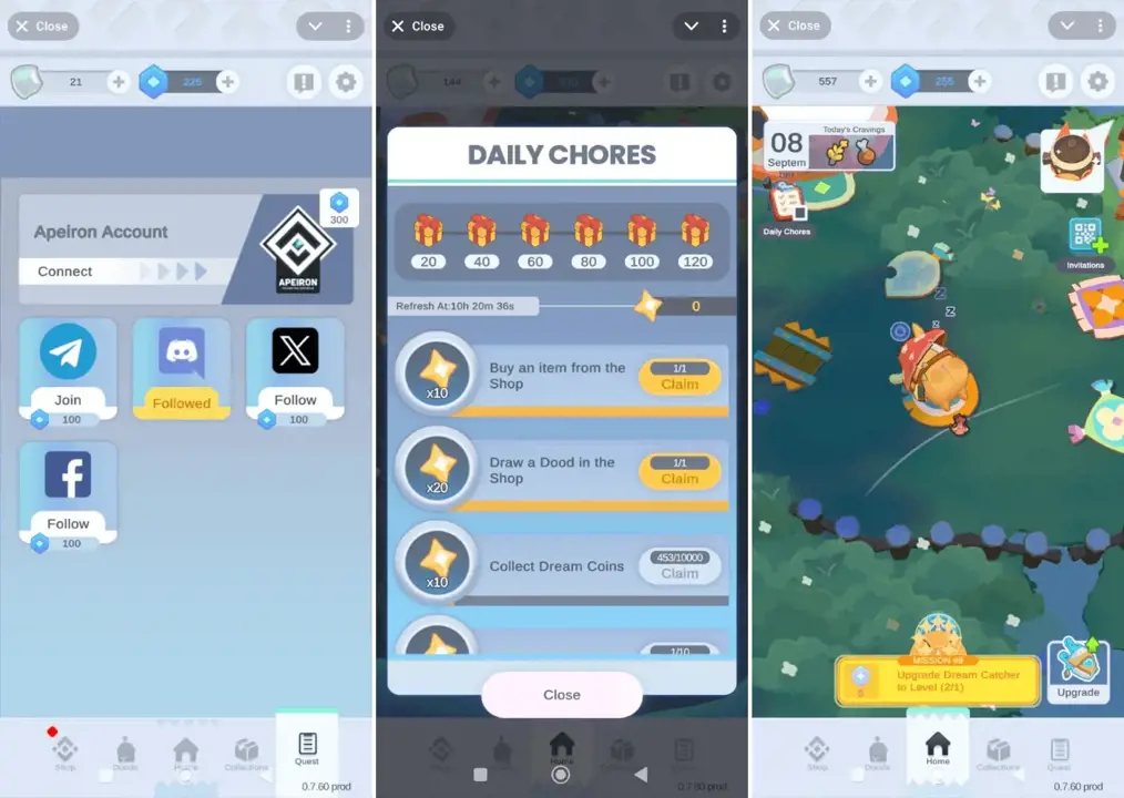 DoodiRanch is a light ranch-sim mini game available directly through Telegram and LINE. There is no separate download or install required, as you simply launch the bot, start the mini app, and take care of your Doods on a small island. Designed for short and casual check-ins, the game uses simple tap-based actions where you wake your Dood, assign tasks, and collect results later. Created by the team behind Apeiron as part of the DoodiPals franchise, it offers a straightforward experience described as “0% skill, 100% chill” and is intended for players who want a stress-free way to pass time while staying inside their messaging app.