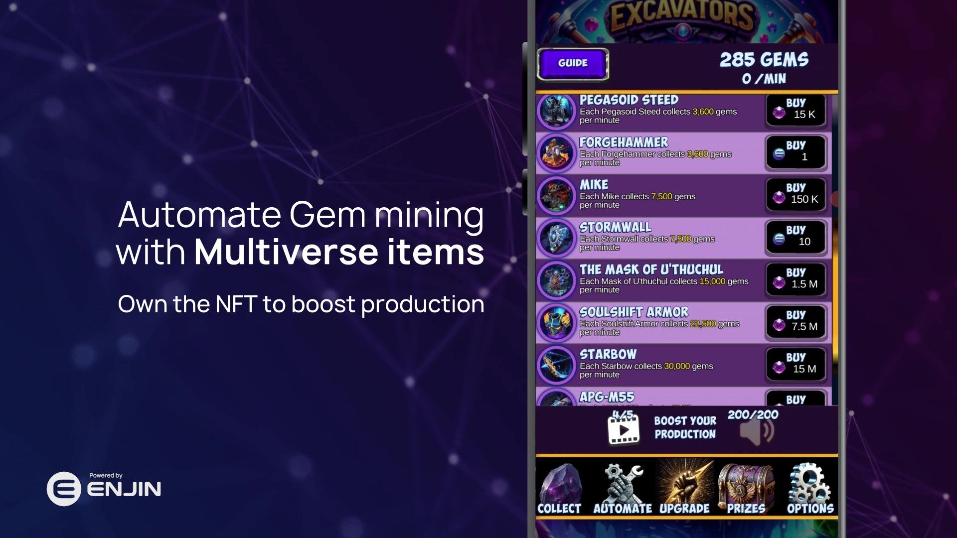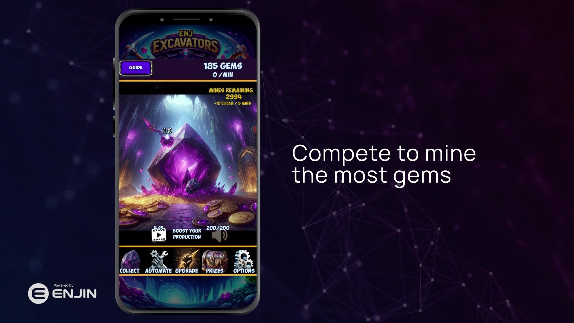 ENJ Excavators is a free-to-play idle clicker where every active player can earn rewards in Enjin Coin, but only the top diggers take home the biggest prizes.Build your gem production empire: