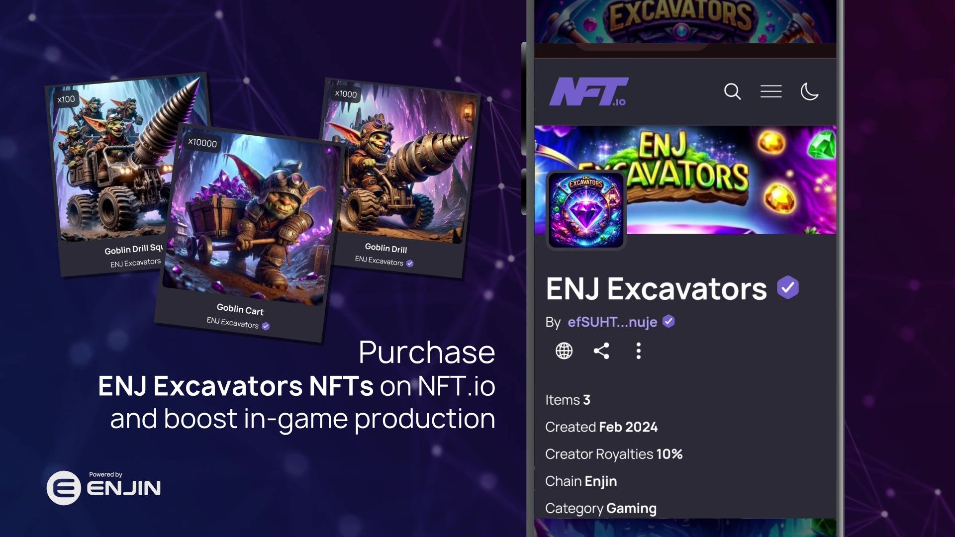 – Own specific Enjin NFTs? They’ll boost your production when equipped in-game.Climb the leaderboard, outdig your rivals, and claim yourself a weekly prize.The deeper you go, the more ENJ you earn.