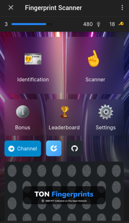 “Scanner” utilizes the NFT collection called TON Fingerprints, which is open source and licensed under CC0 1.0 Universal. Within this collection, you’ll find a variety of unique and captivating fingerprints that you can collect and utilize for your own endeavors.