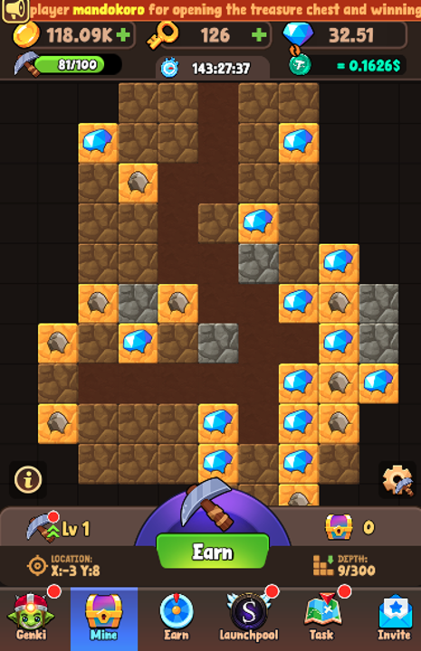 Welcome to the world of GenkiMiner! This is a deep mining exploration and resource management game that integrates blockchain technology. Players enhance their pickaxes to contnuously explore the treasure-filled underground world, uncovering various precious resources. In regularly reset maps, players need to strategically plan their excavation routes and manage gold and gem resources to improve hoe performance and mining efficiency. The chest and key mechanism adds more surprises and variables to the exploration process, allowing players to enjoy the fun of mining while experiencing a blend of strategy and luck!