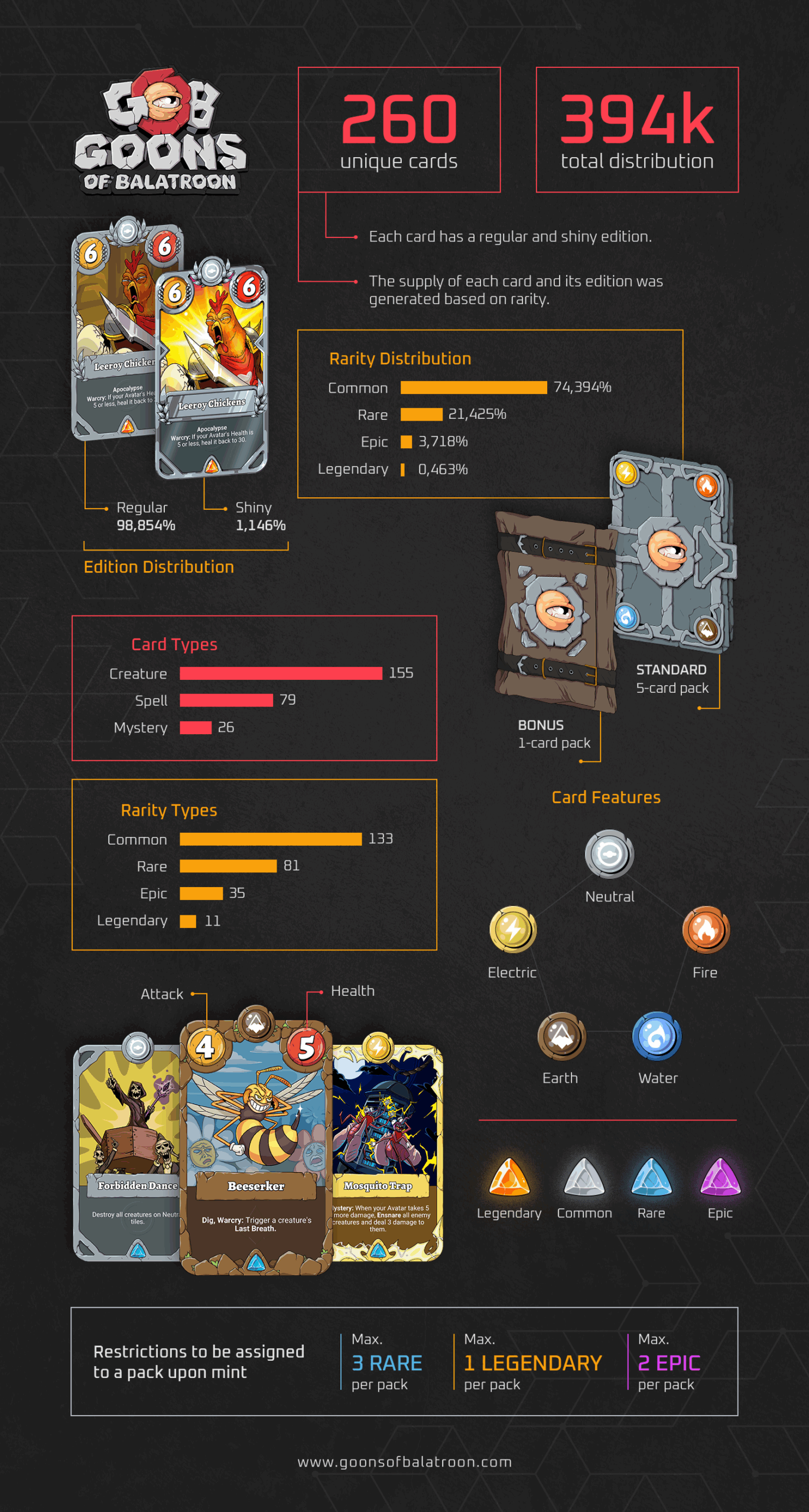 Goons of Balatroon is a funny, wacky NFT universe featuring a card battle game, where player factions fight each other for the control of Balatroon using Goon Cards and earn $GOB tokens for their valiant efforts.