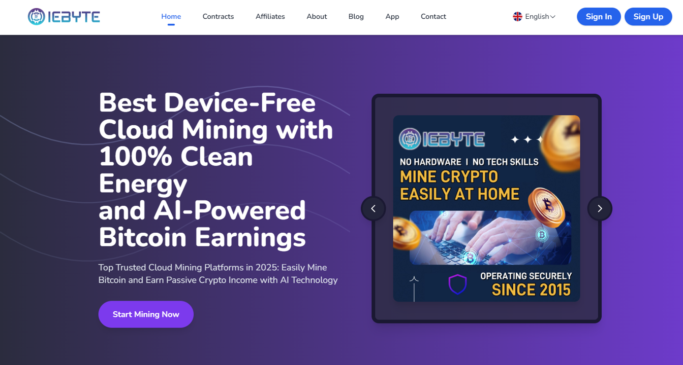 IEByte is a leading global cloud mining platform established in 2015, serving over 1 million users across 200+ countries. The service allows anyone to mine Bitcoin, Ethereum, and other cryptocurrencies remotely without expensive hardware or technical expertise. Operating 150+ mining farms powered by 300,000 machines using renewable energy, IEByte offers AI-optimized mining with up to 7% daily returns. New users receive a $10 signup bonus and can start with contracts from just $200. The platform features bank-level security, automated daily payouts, 24/7 customer support, and fast withdrawals under 5 minutes, making crypto mining accessible to everyone.