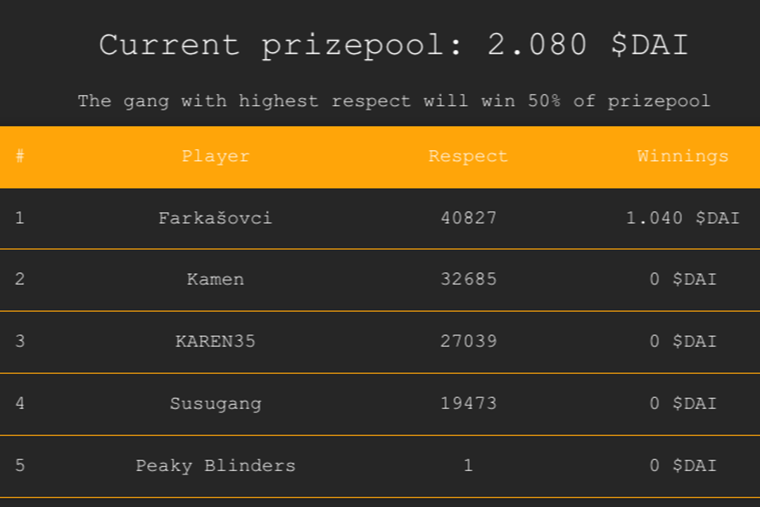 Illegalities is a browser NFT game based in the corrupt city of Roseville. Players try to become the most respected gang in the city by performing various criminal actions and fighting other gangs in the city to earn more respect. Illegalities does not have its own token and uses a stable coin, so the prices and rewards will not fluctuate.