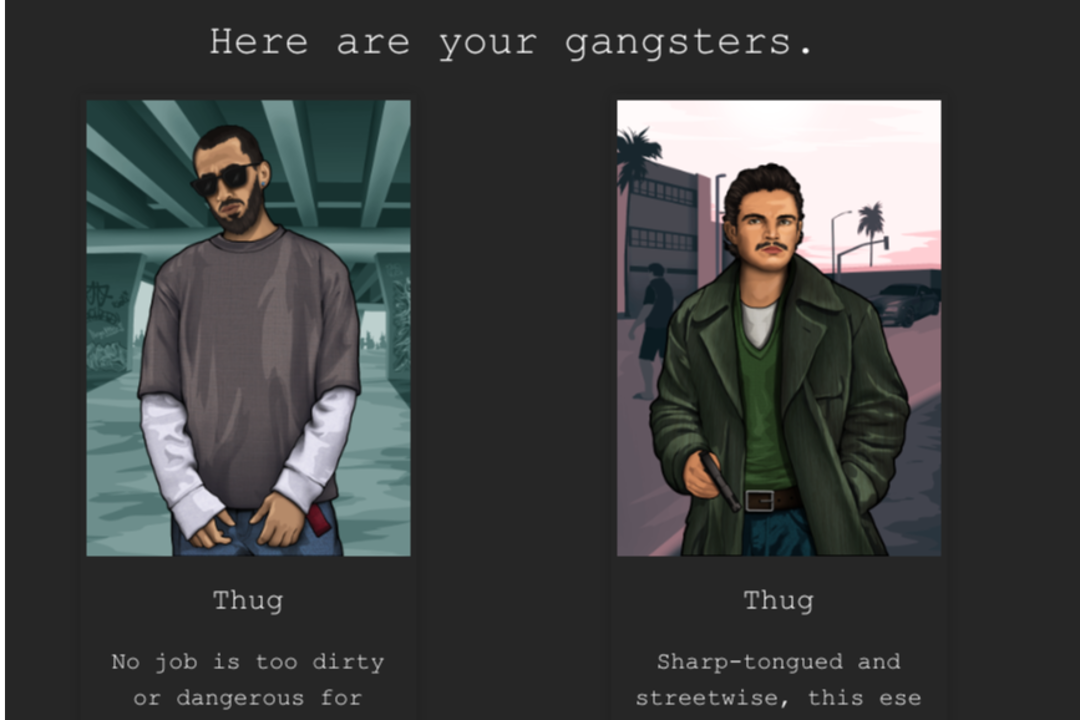 In Illegalities players control a gang which operates in the city of Roesville and perform various criminal activities. Game is based on 90 day long seasons, and each season brings new content and new prizepool to win. After the season ends, the game resets, so new players will have the same chances tow in, and players can claim their winnings and prepare for the next season.