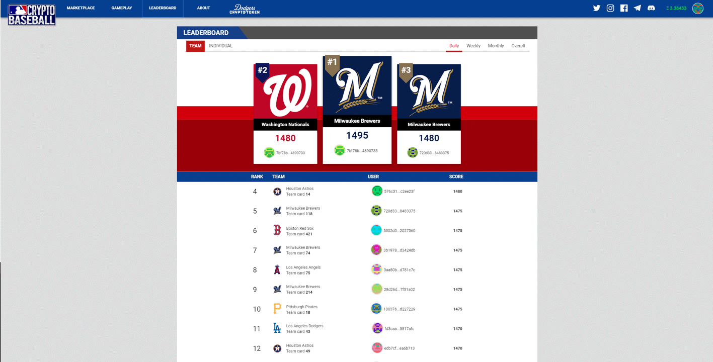 MLB Champions NFT Game Stats