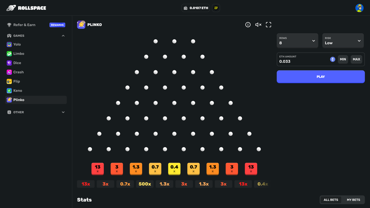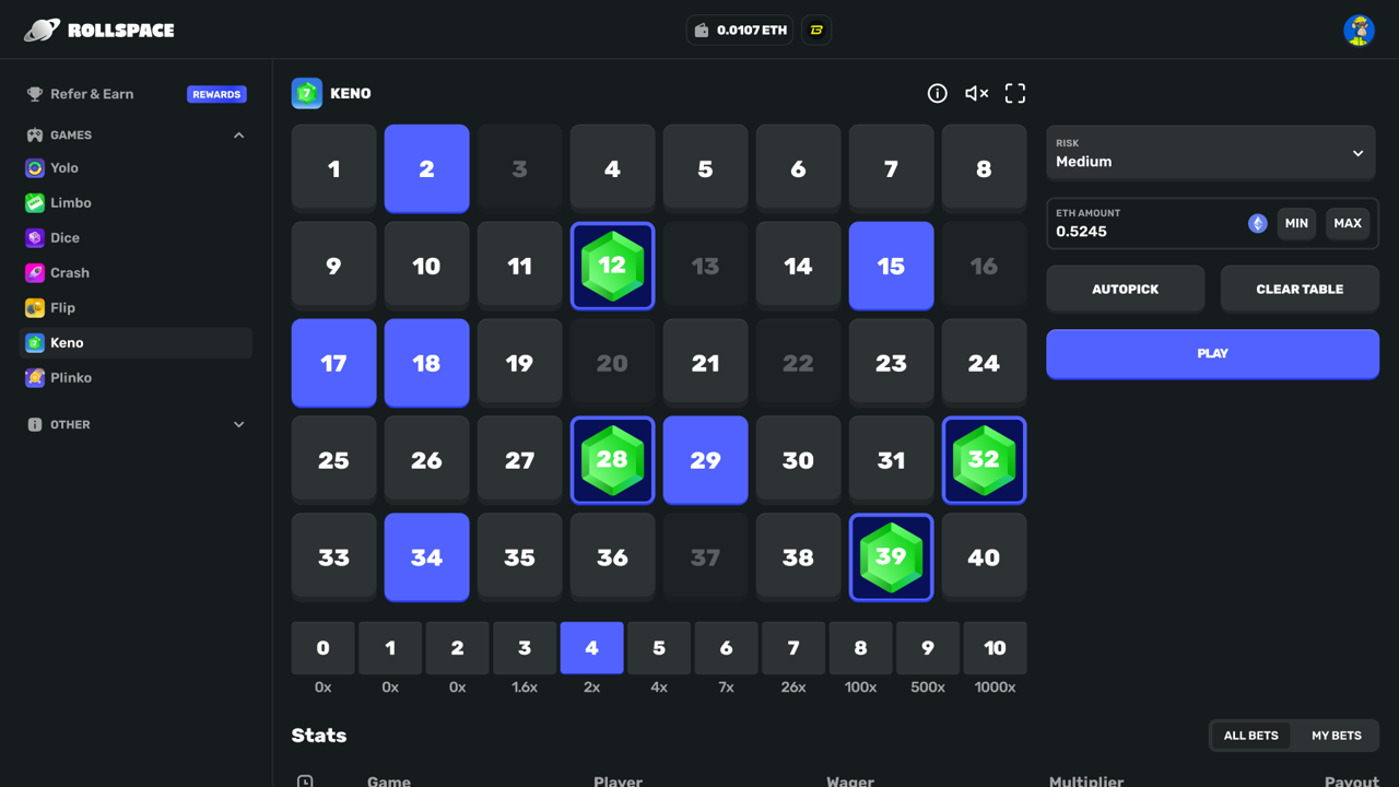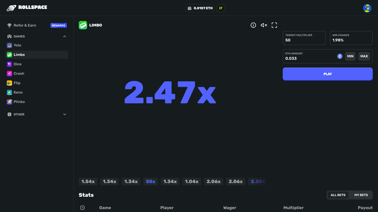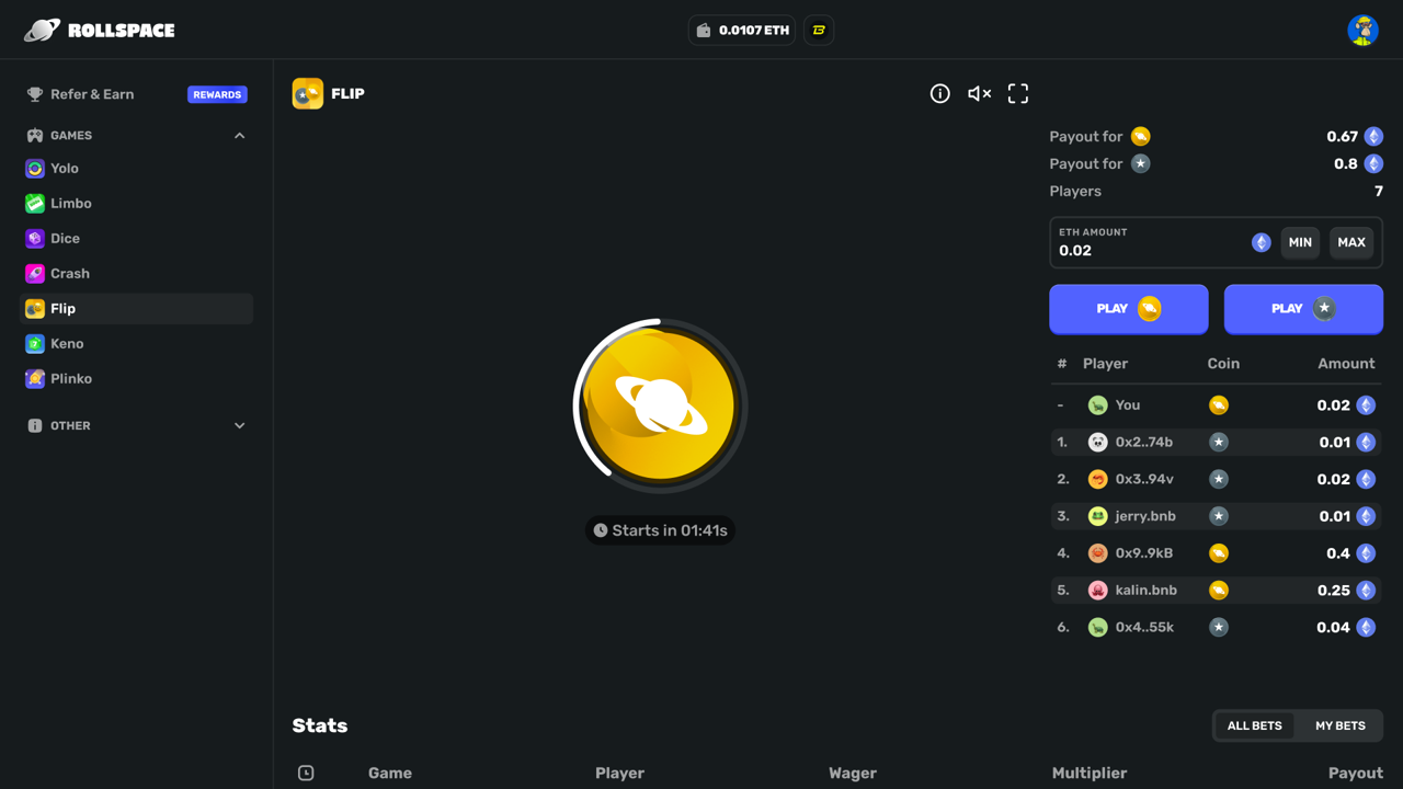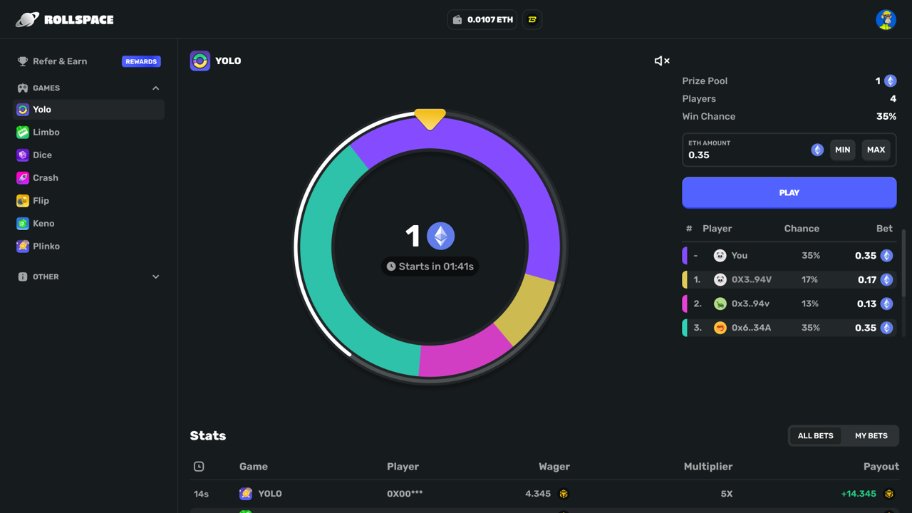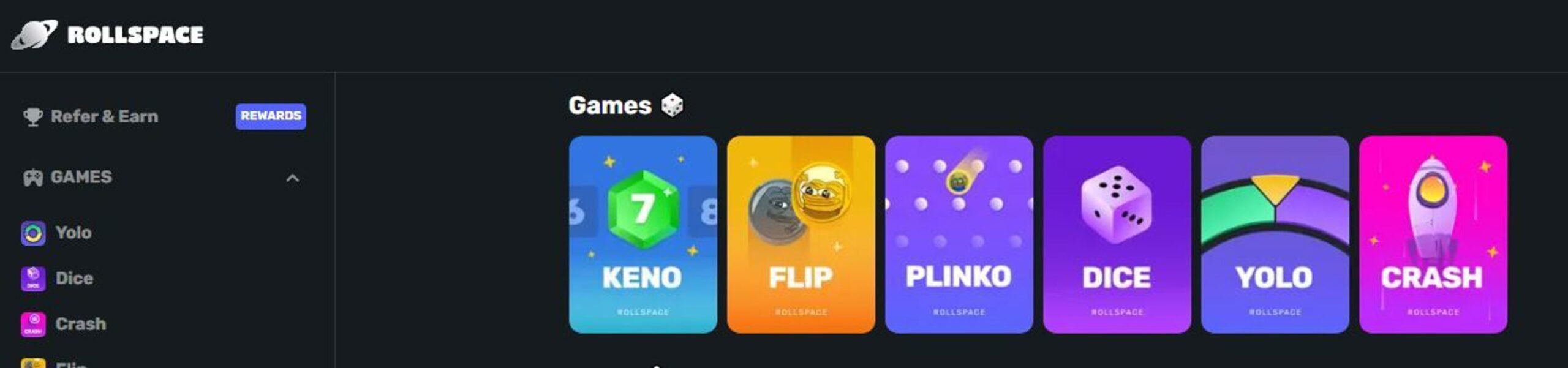 Rollspace offers a variety of PvP crypto games like YOLO, Dice, Coin Flip, and Crash. To play these games, users need to connect their crypto wallet and deposit funds. Each game has its own unique rules and mechanics, but the outcomes are largely determined by chance. Having more funds than opponents can increase the chances of winning, but it’s not a guaranteed success.