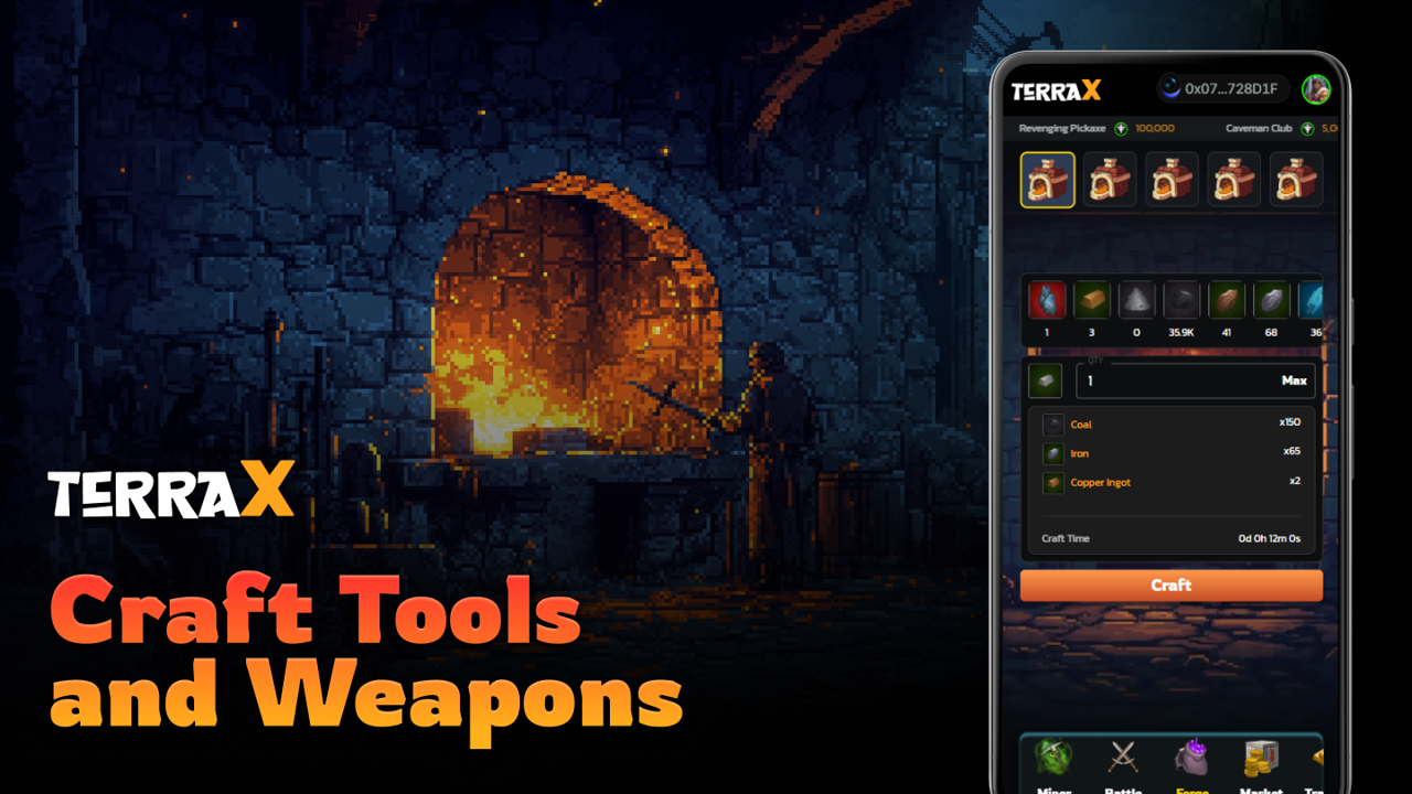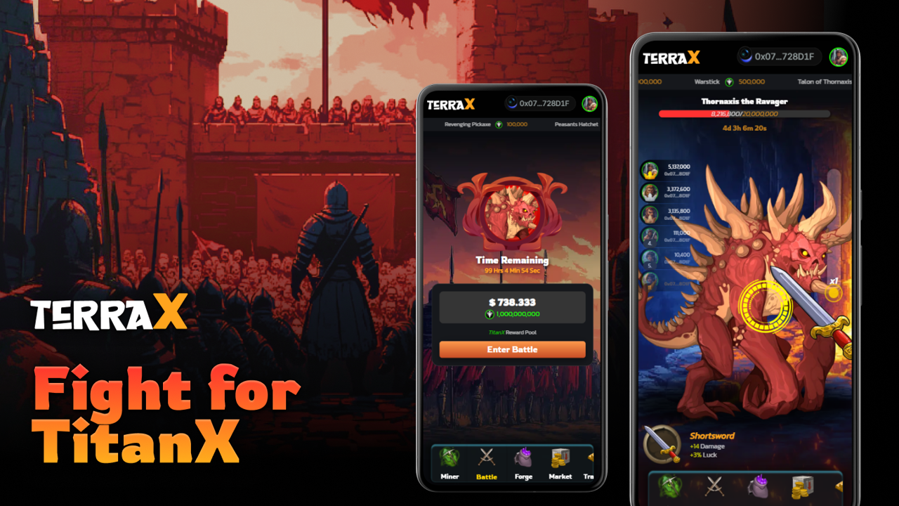 Players embark on a journey to mine valuable ores and forge superior tools and weapons, pushing the boundaries of what’s possible with every tap. The key to your progress? Upgrading your gear to mine faster and more efficiently, which in turn opens the door to bigger rewards. Players every week can come together to fight a world boss where you can earn up to 30% of our weekly sales in TitanX Rewards.
