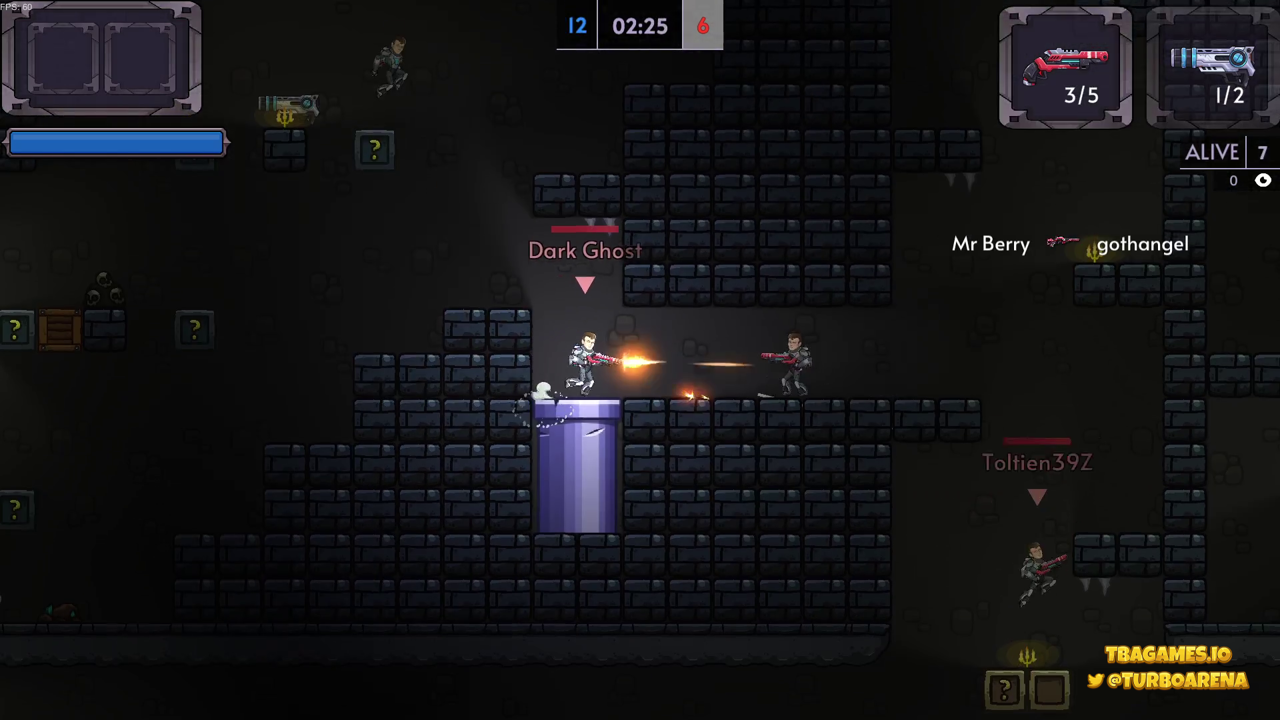 A 2D action, run-and-gun platformer with long-range and melee weapons. Play on teams or as a solo player in Battle Royale mode.