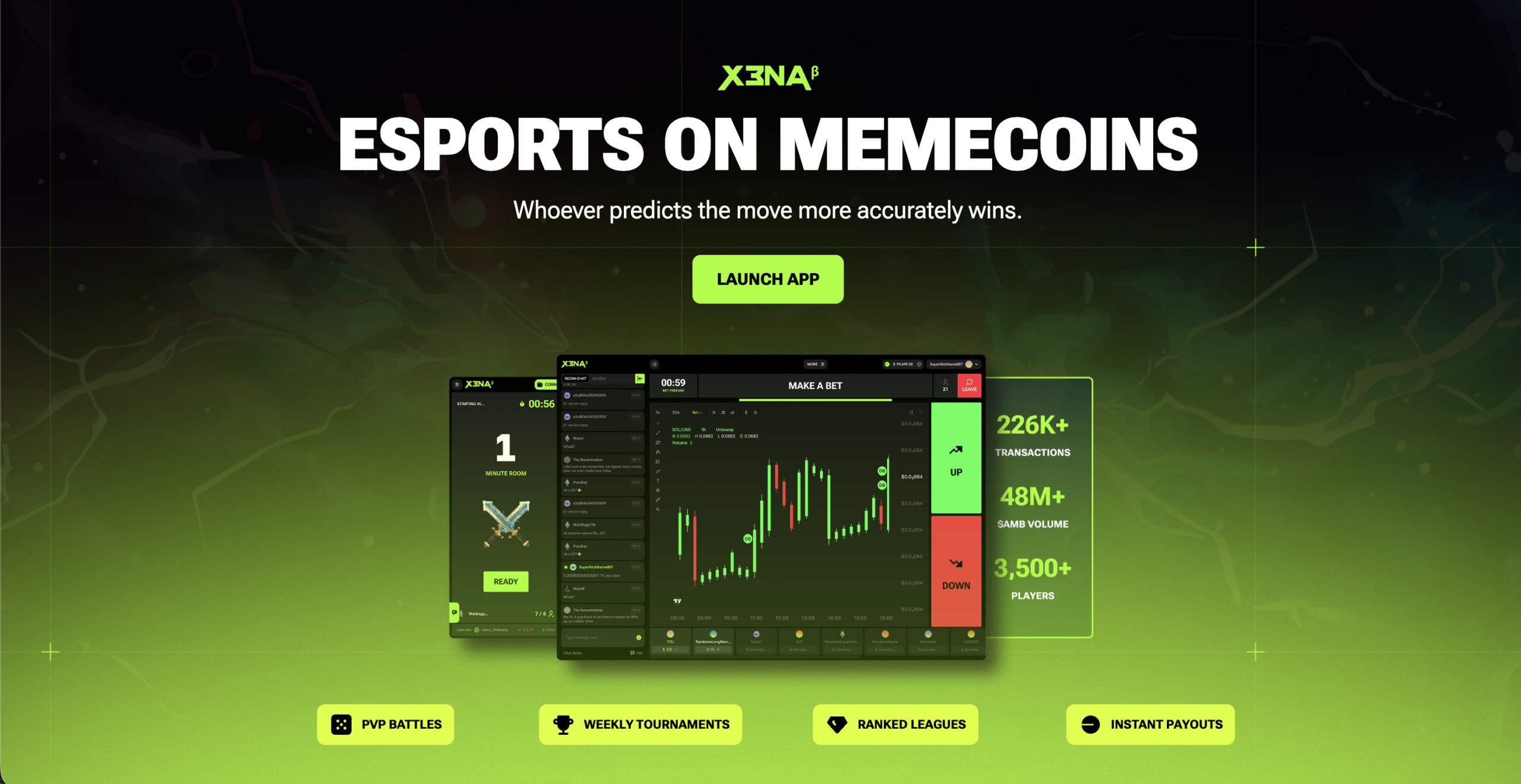 Why X3NA? Stop playing in casinos where the odds are rigged. We built an arena where the only thing that matters is your ability to read the market. No house edge, no manipulation—just pure PvP.